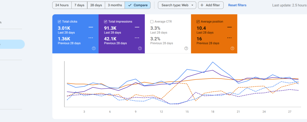 رشد دو برابری کلیک با آف پیج اصولی در یک ماه رشد دو برابری کلیک با آف پیج اصولی در یک ماه نمونه کارهای سئو سایت